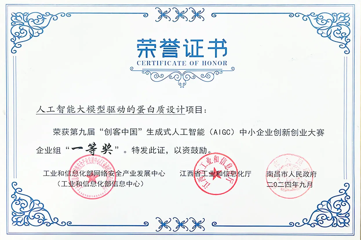 公司先后荣获国家高新技术企业、上海市专精特新中小企业、闵行区新锐企业等多项荣誉称号,及“创客中国”AIGC专题赛全国一等奖、“创客中国”企业组全国二等奖、上榜工信部第一批人工智能在生物制造领域典型应用案例、第五届"海聚英才"全球创新创业大赛铜聚奖等,目前已完成四轮融资,投资方包括中国石油昆仑资本、涌铧投资、上海未来产业基金、启明创投、本草资本、金沙江联合资本等多家知名投资公司。
