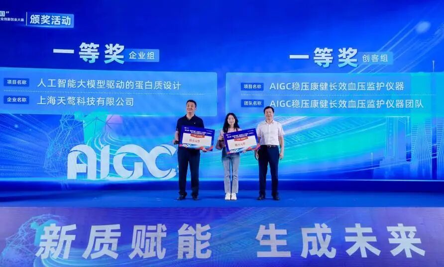 洪亮(左一)获得创客中国AIGC专题赛冠军。