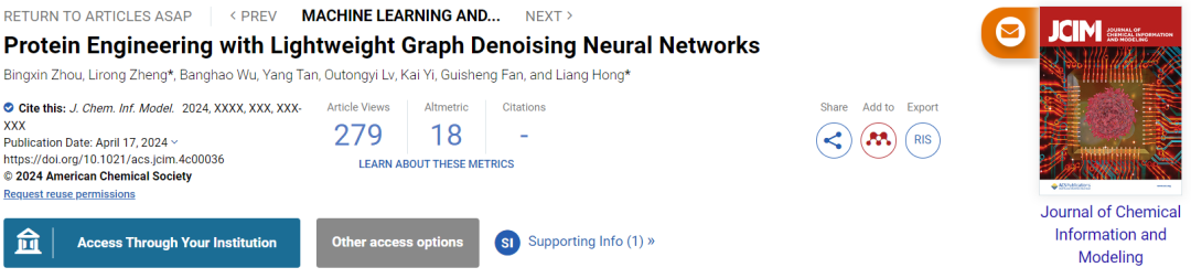 相关论文以《蛋白质工程与轻量级图去噪神经网络》(Protein Engineering with Lightweight Graph Denoising Neural Networks)为题发表在 Journal of Chemical Information and Modeling 上[1]。